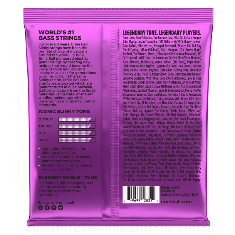Ernie Ball 2831 Round Wound Slinky Bass Strings offer maximum clarity and serious punch. The list of endorsers for Ernie Ball Slinky bass strings