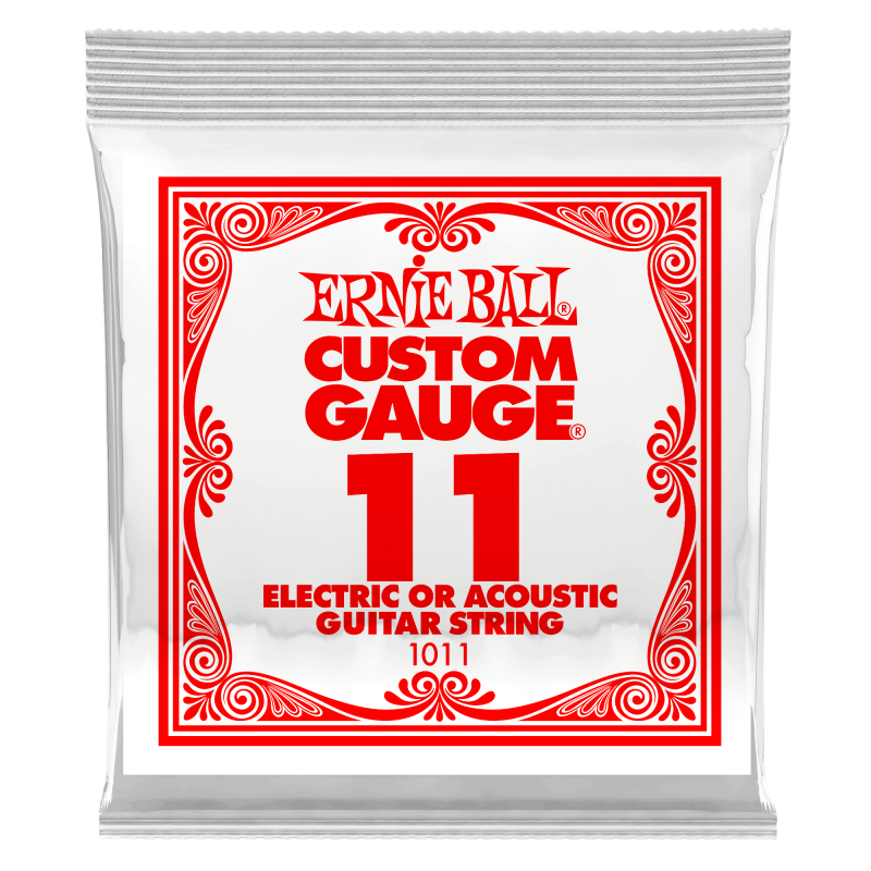 Ernie Ball strings are carefully crafted using the highest quality materials to ensure superior tone and reliability. The specially tempered high carbon steel core wire's hexagonal shape ensures the wrap wire is securely held in place through the length of the string. Precision crafted Swiss brass ball ends are attached with a triple lock twist. Made of specially tempered tin plated high carbon steel. This string is great for use on electric and acoustic guitars, banjos and mandolins but, not classical guitars. Gauge: .011