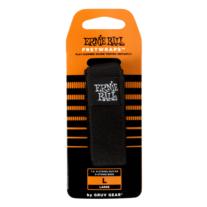 The Ernie Ball FretWrap by Gruv Gear is a professional string dampener/muting accessory that every studio, session player, and tapping aficionado should have! Slide on the FretWrap to effectively cut overtones and sympathetic resonance during recording, live performance, two-hand tapping, or any creative situation where you need that extra muting hand for cleaner takes without the unwanted string noise or ringing. The adjustable strap lets you fine-tune the pressure and dampening of the strings. You can quickly slide the dampener over the headstock when not in use. No special guitar modification, installation, or tools required - Yet amazingly effective! LG - Fits 6-string basses, 7-string electric guitars & 8-string electric guitars.