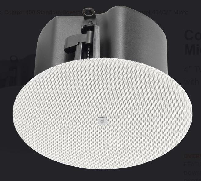The JBL Control 414C/T Micro, part of the Control 400 Standard Coverage Series, is a two-way ceiling loudspeaker, featuring a 4” woofer and a low-profile enclosure that is ideal for applications where ceiling plenum space is restricted.