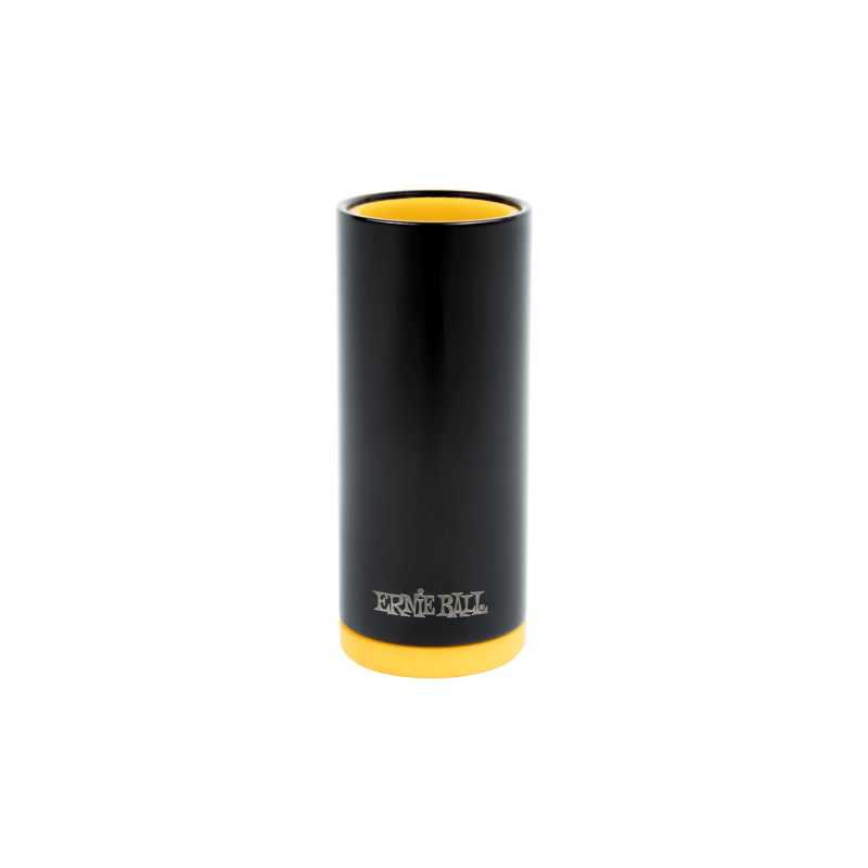 Upgrade your slide performance with unsurpassed comfort and control. The Ernie Ball comfort slide is fitted with a soft inner sleeve for a secure fit, giving you maximum control as you slide up and down the fretboard. The brightly colored sleeve keeps visibility high in dark environments and provides a soft cushiony barrier from the slides’ rolled metal edge. Suitable for electric and acoustic guitars, this slide features smooth, durable, black chrome plated brass that allows the notes to ring out with a bright, chimey tone and maximum sustain.