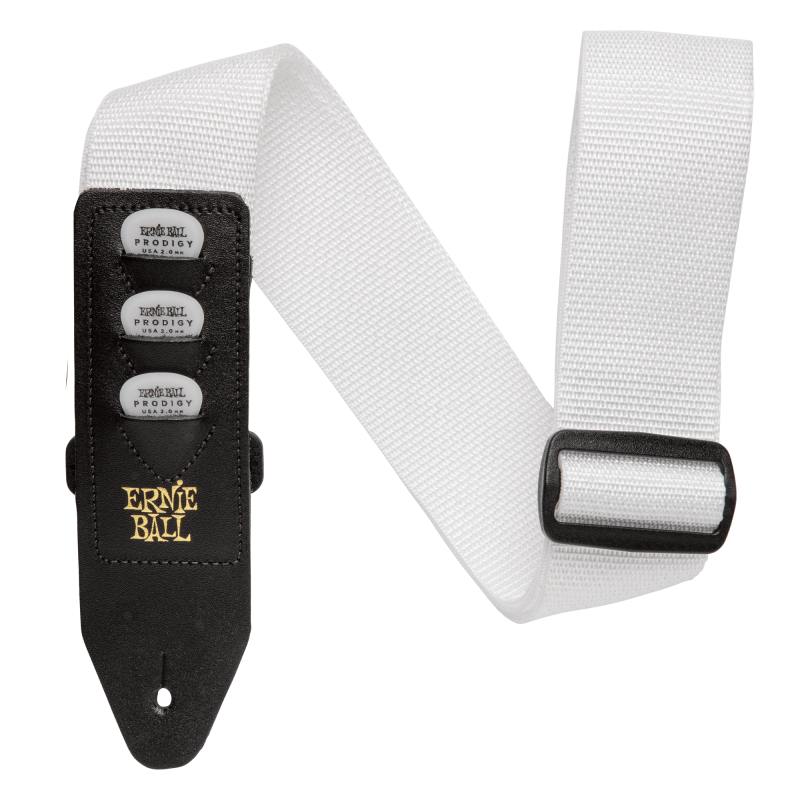Колан за китара ERNIE BALL 4259 Polypro Pickholder Guitar/Bass Strap - White с държачи за перца